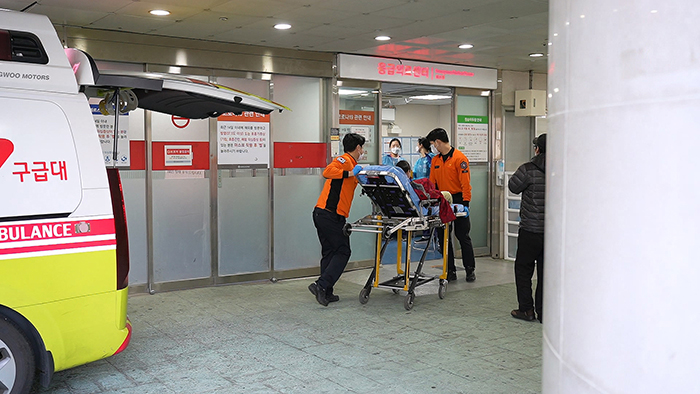 [사진1] 부산백병원 응급의료센터에 소아환자가 이송되고 있다.