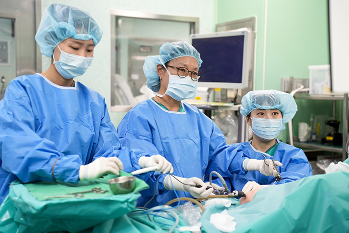 [사진2] 부산백병원 소아외과 남소현 교수(가운데)가 소아탈장 수술을 집도하고 있다. (*본 기사내용과 무관함)