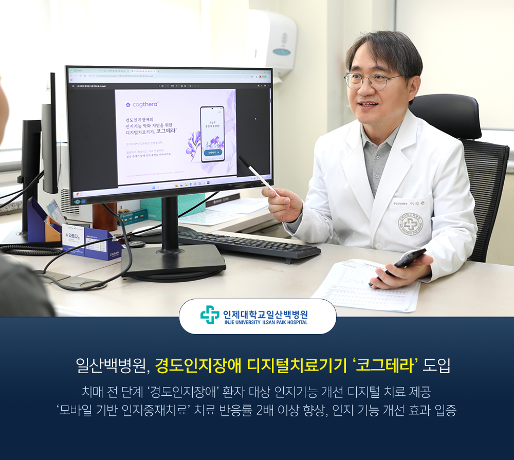 인제대학교 일산백병원(원장 최원주)이 경도인지장애 환자의 인지기능 개선을 위한 디지털 치료기기 ‘코그테라’를 도입하고, 환자 맞춤형 디지털 인지중재 치료를 본격적으로 시행한다.