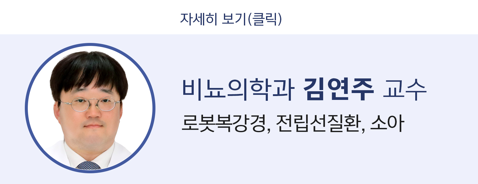 비뇨의학과 김연주 교수는 로봇복강경 수술, 전립선 질환, 소아 비뇨기 질환 등을 전문으로 진료합니다.
