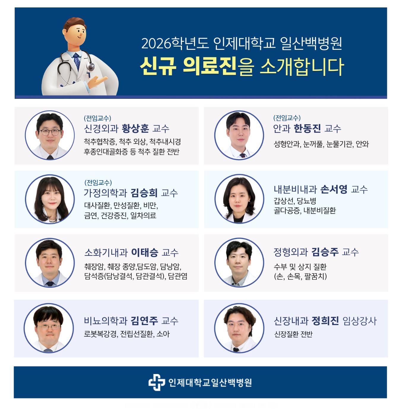 일산백병원, 2026학년도 신규 의료진을 소개합니다!
